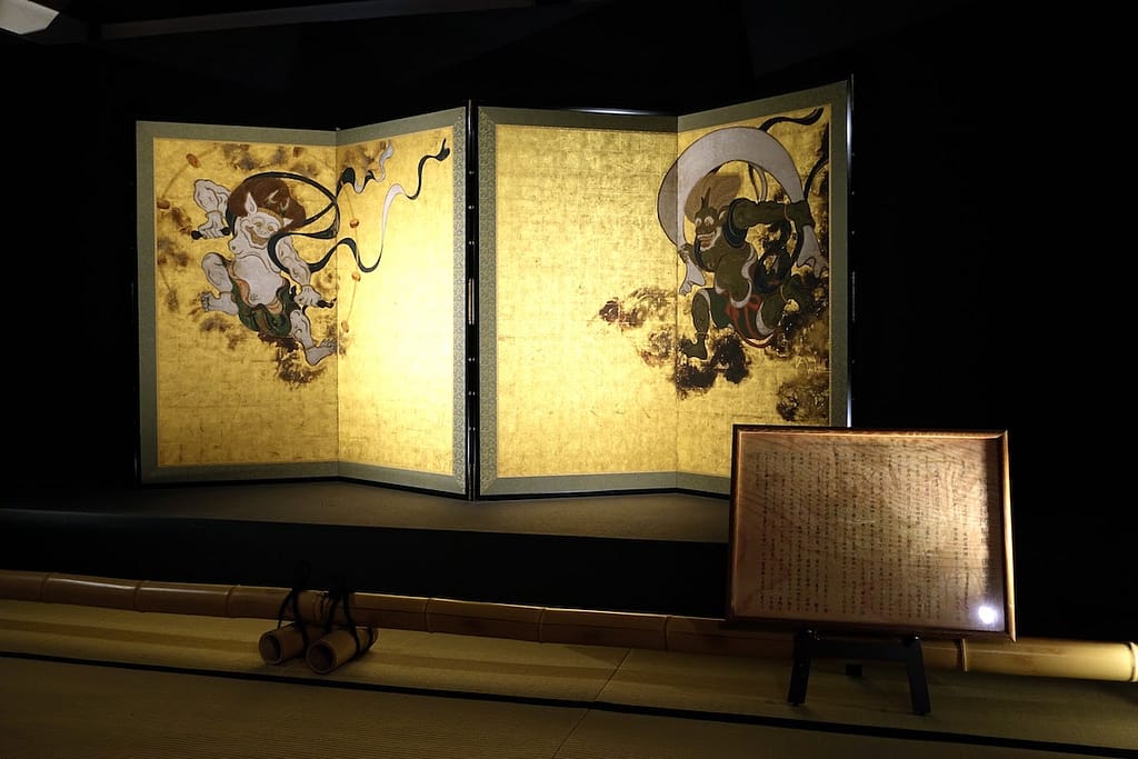 이것이 순금으로 덧칠한 그림이다. 일본의 국보인 풍신뇌신도 병풍이다. 진짜 금을 칠한 바탕에 채색을 한 병품이다. 다와라야 소타쓰의 대표작인데 비바람을 주관하는 풍신(오른쪽)과 재앙으로부터 보호하는 뇌신(왼쪽)을 그린 작품이다. 내역이나 설명이 한글까지는 아니더라도 영문이라도 병기했으면 좋았을것 같다. 교토여행을 마치고 와서 인터넷으로 정보를 찾아보고 드는 아쉬움이다.