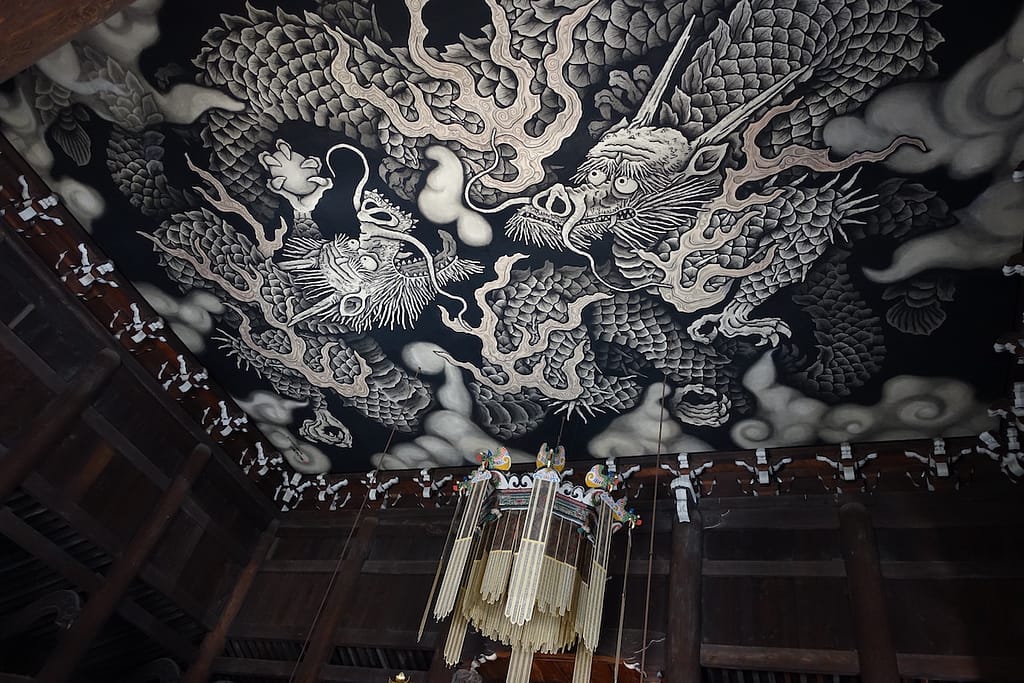 건인사에서 유명한 쌍용그림이다. 선종사원답게 불상과 갯수와 크기는 눈에띄지 않지만 위 천장을 가득메운 용의 그림이 결코 무겁거나 무섭지 않는 오히려 해학적이고 친근한 이미지로 우리를 내려다보고 있다.