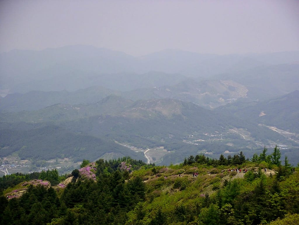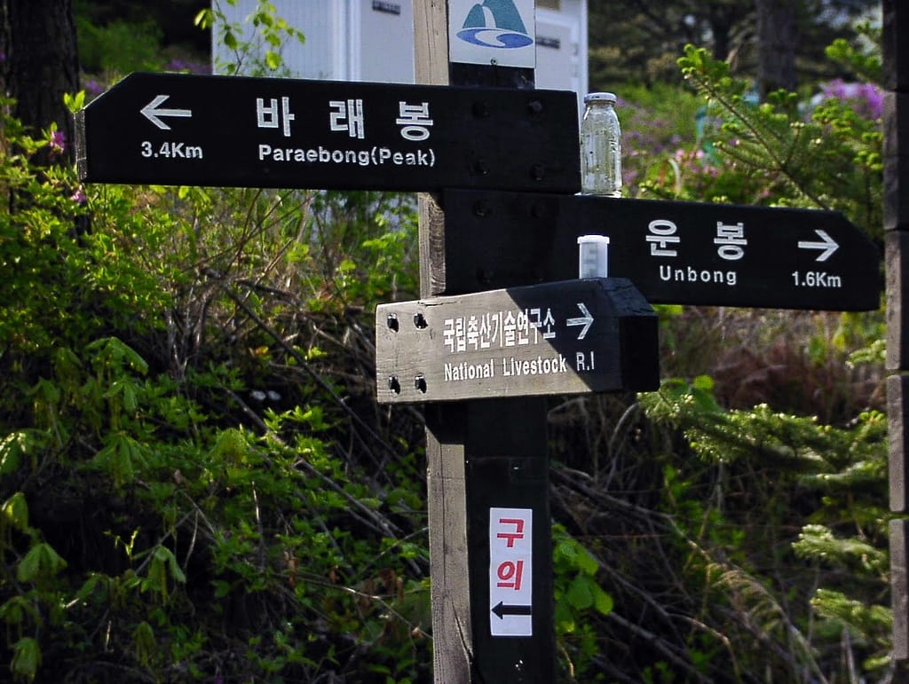 용산리 초입지에서 바래봉의 등산은 두가지 코스 – 능선을 올라가는 코스와 절을 통해 올라가는 수직코스